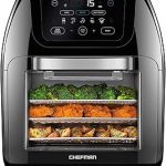 Cook smarter, healthier, and with less waste. This XL 10L CHEFMAN oven air fries with less oil, roasts and bakes with ease, dehydrates to save food (and money), and shuts off automatically to conserve energy. With 17 touch presets and a large easy-view window, it’s your all-in-one kitchen upgrade.